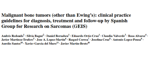 Malignant bone tumors (other than Ewing’s):clinical practice guidelines for diagnosis, treatment and follow-up by Spanish Group for Research on Sarcomas (GEIS).
